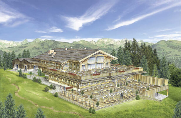The private members club project was part of a wider development being undertaken that provides for the replacement of the system of gondolas that link the village with the mountains and the wider network of ski run region forming the famous resort. Being located on a mountain - the building had to overcome significant technological challenges in the construction and durability of the architecture and design. For these reasons Archer Humphryes specified a bespoke laminated structure of larch beams forming deeply triangulated trusses that would span the length without intermediary support. To do this Archer Humphryes enlisted specialist engineers to develop the system, “Charpente Concept” with ChaletBau Matti providing the local construction.