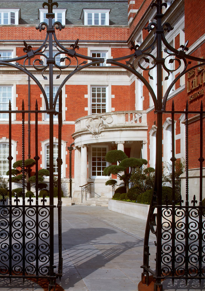 An ‘imitation of paradise’ was the leitmotif of the fortress, symbols of ‘lavish luxury’ for the public areas which soon became adopted for the interior; not dissimilar to the origins of Mountford’s aesthetic. The Telegraph describes its’ style: “the building still has the sunny, supercilious air of an English school for the privileged: a prim, foliage-lined quadrangle, insolent black gates with fleur-de-lys finials, and stone dressings that have an appealing baronial decrepitness, grey and slightly mould-spattered with age. But inside glitters like an Indian palace, with flame-tickled tea lamps, illuminated screens, and gold-threaded tapestries of the tree of life.”
