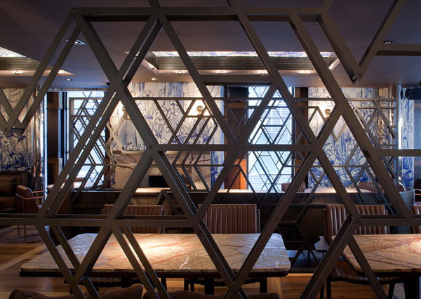 Located in the eminently popular former Endurance Pub on Berwick Street in London’s Soho, Duck and Rice is Alan’s first return to Chinese cooking since Yauatcha, which is coincidentally next-door. Combining craft beers with authentic cuisine provides an architectural opportunity with the display of copper brewing equipment in the space, next to the bar. This typifies our design sincerity – making processes visible – something we achieve in our restaurants where food or drink preparation is integrated with the dining experience. In our Penderyn project we placed whisky casks providing graphic dividers in the tasting hall, in the Chiltern Firehouse the bonnet kitchen range is centre stage in the space and in the future Martini Lounge of the Great Northern Hotel a traditional drinks trolley will be redolent of 1950’s Madison Avenue cool cocktail life.