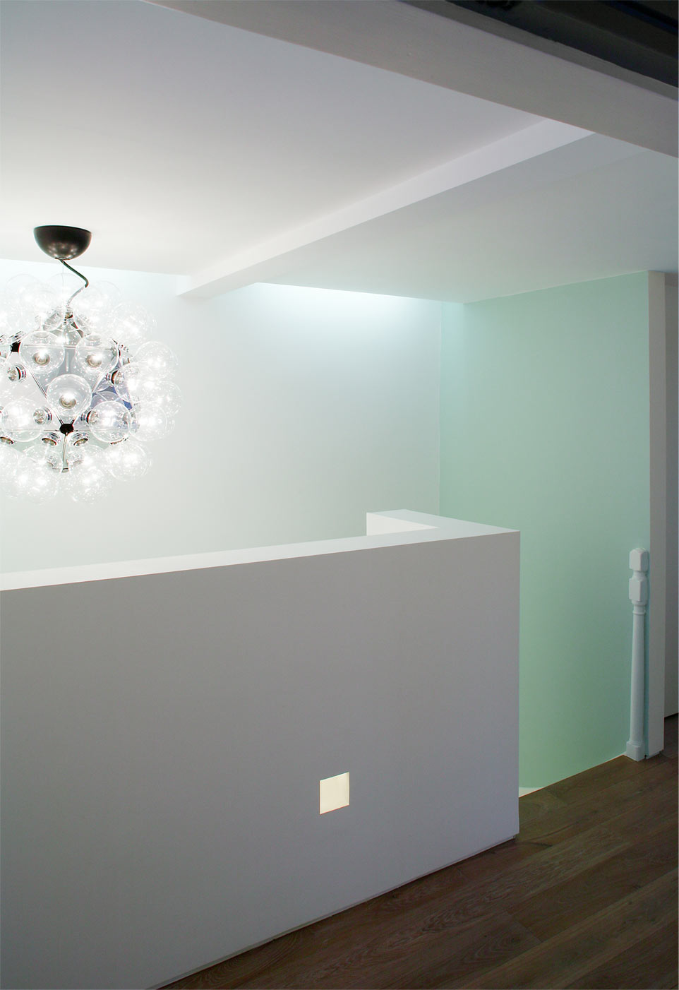 The new interiors accommodate concealed and feature lighting points, which draw attention to the clean lines of the new sculptural interior and emulate the calm atmosphere of a contemporary gallery. A white palette is combined with 19th Century greens and accent yellow to draw attention to period features of the historic building.