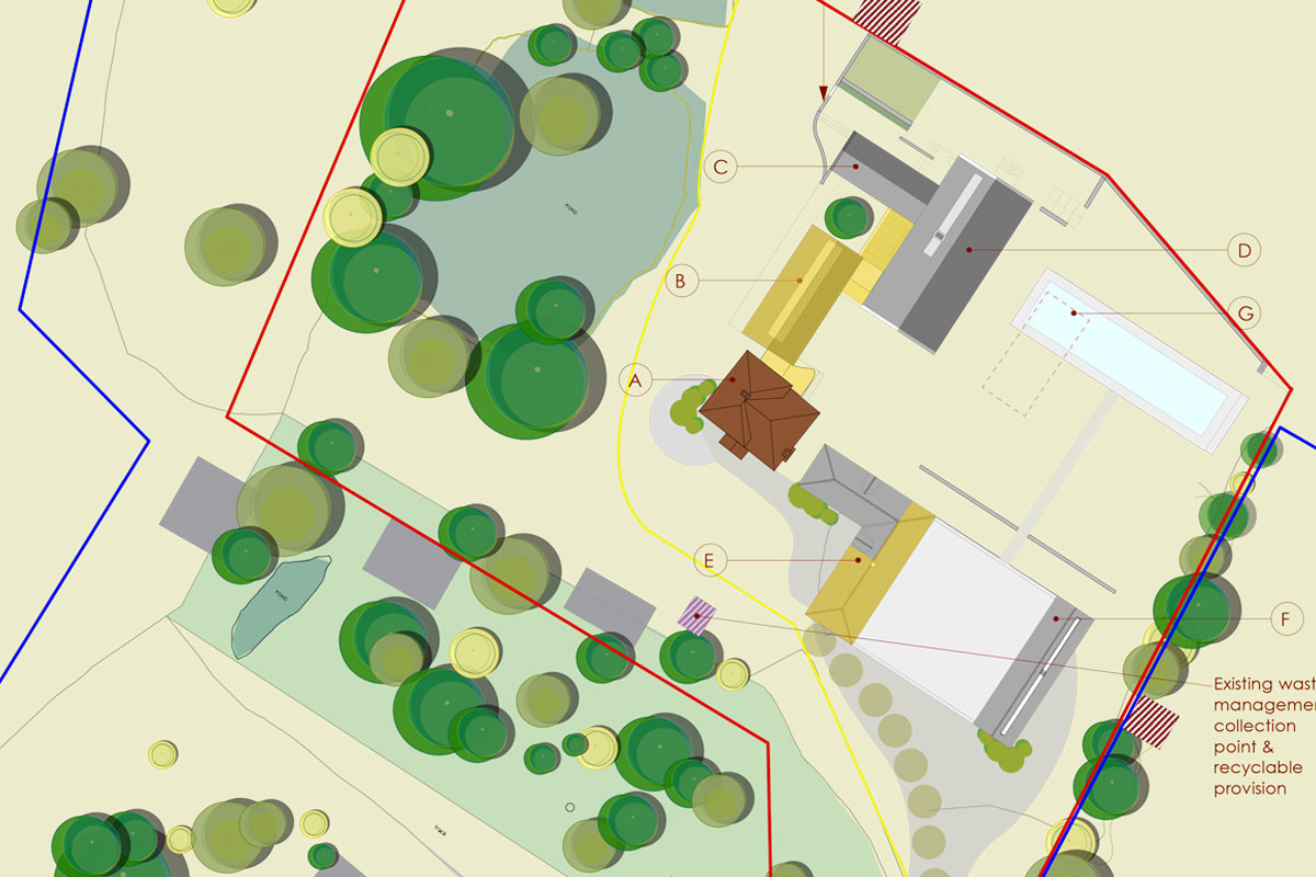 Archer Humphryes triumph after two years of negotiation and methodical work with the council and English Heritage have recently been awarded consent to create a substantial 10,000 square foot cluster of properties with the Listed building being retained at the heart of the proposal. Retained are the character of the period stable, a modern mid – century barn, a Victorian dairy and various flint buildings. Intertwined with the historic are the characteristically modern architectural elements that link buildings together. A floating glass pavilion which allows views of the Ponds through its transparency is more akin to a modern age - although not like Mies Van der Rohe’s Farnsworth House, more empathy with a contemporary zen Japanese Tea House.