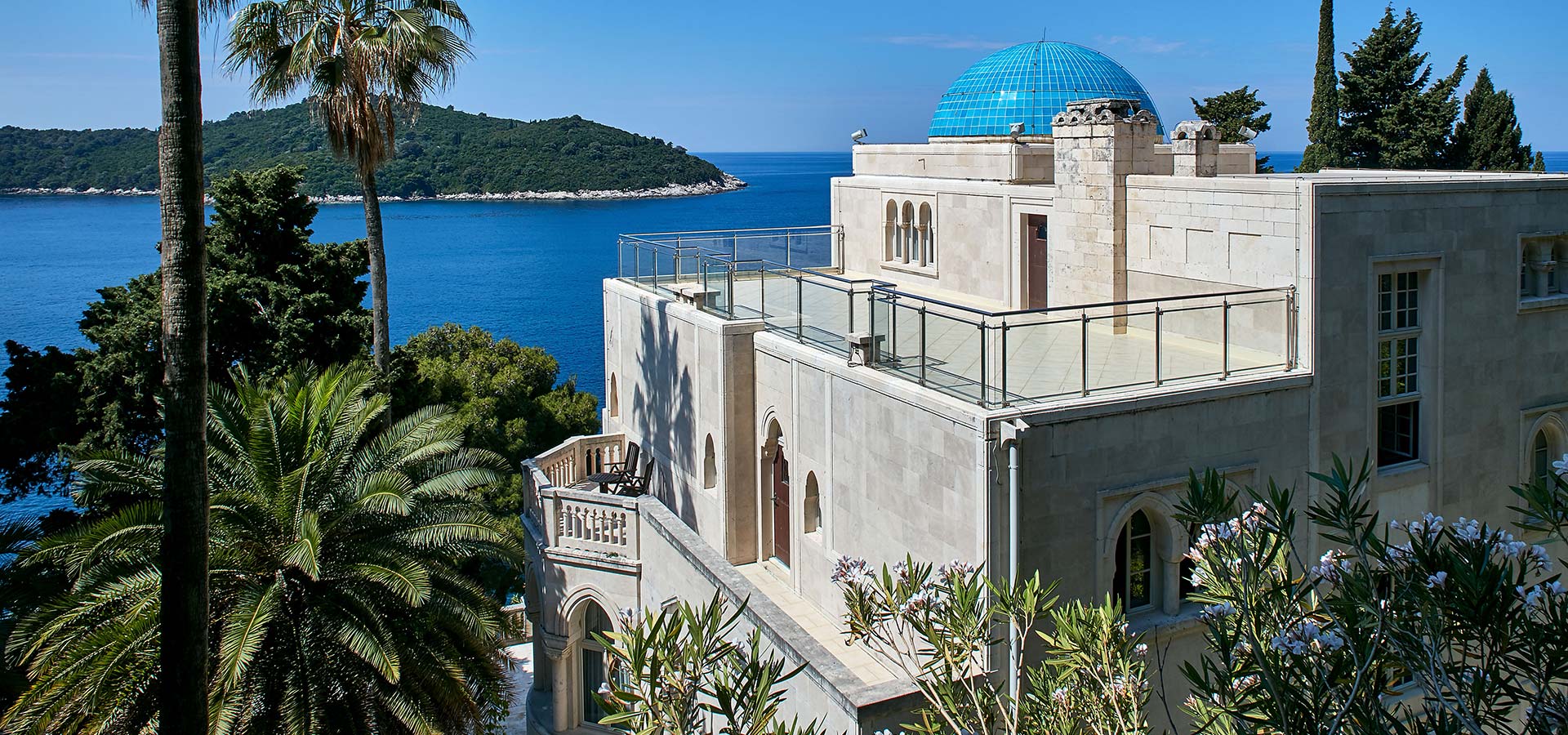 Surrounded by colourful gardens, with palm and cypress trees, 4,200 square meters of terraces and lush gardens are part of the brief for Archer Humphryes to recreate a modern destination for the villas interiors and landscape for the Luxury Adriatic Hotel Collection. With furniture and inventory coming from all parts of the world, including one of Santiago de Chile’s historic hotels, the concept will be beautiful, classic and contemporary. A new spa, indoor and outdoor pool, amenity space for entertaining and dining in the garden, full internal restoration and reconnecting the dome by bridge to the cliff are all part of the planned renovation. Work will begin in late 2017.
